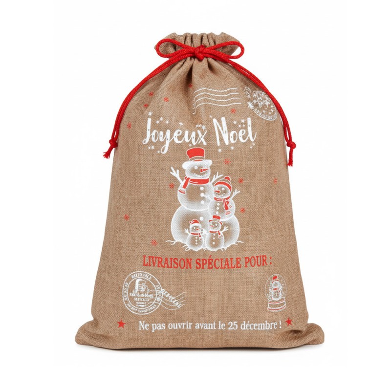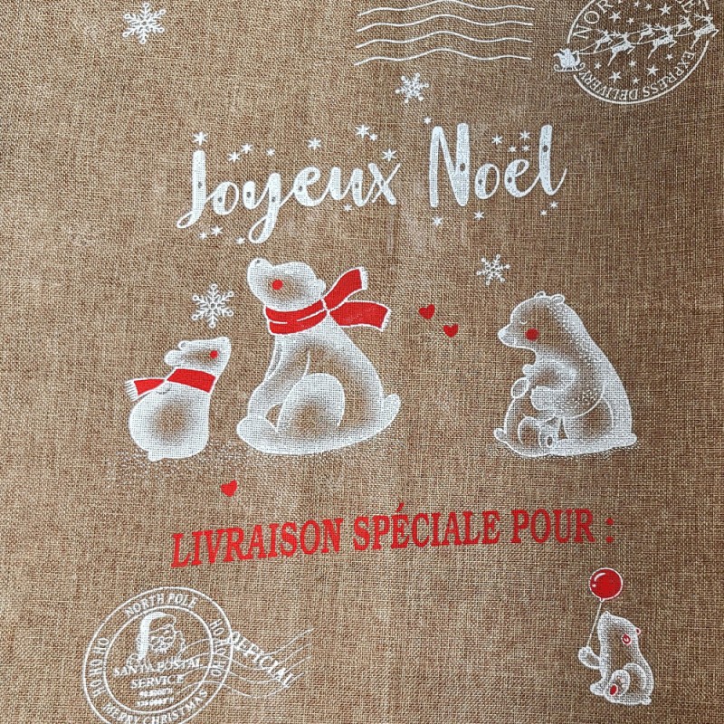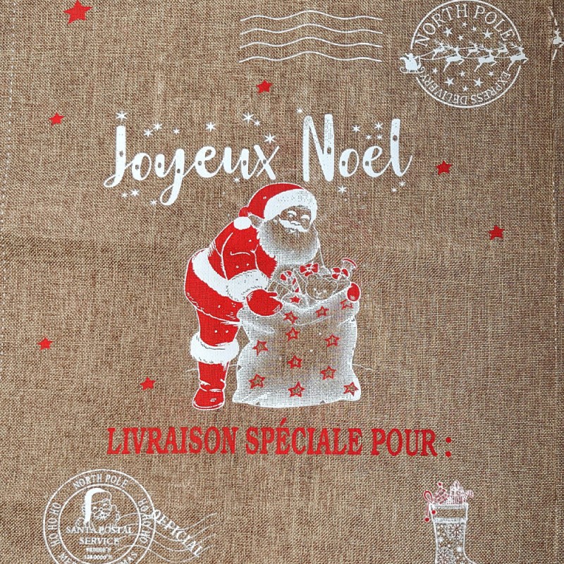 Je vous propose des hottes à cadeaux en toile de jute de qualité très résistante avec divers motifs de noël.